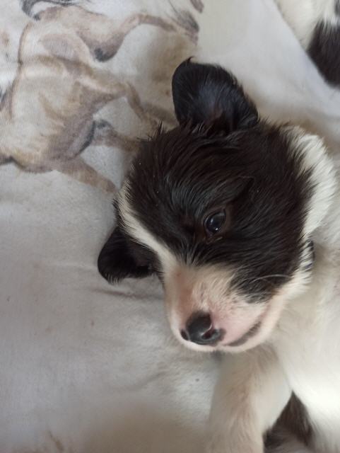 Die Mädels in black-sable-white und black-white-tan und die Jungs wohl alle (Stand jetzt) in black-white- tan. Die Tan - Abzeichen und auch die Fellfarben werden sich in den nächsten Tagen noch etwas verändern und wie immer ist die Entwicklung der Kleinen unfassbar spannend. Elsa ist eine glückliche und sehr liebevolle Mutter und die "6" haben ja den Luxus von 10 Milchzitzen, also genug für alle. Kein Wunder also, dass sie schon ordentlich zugenommen haben.